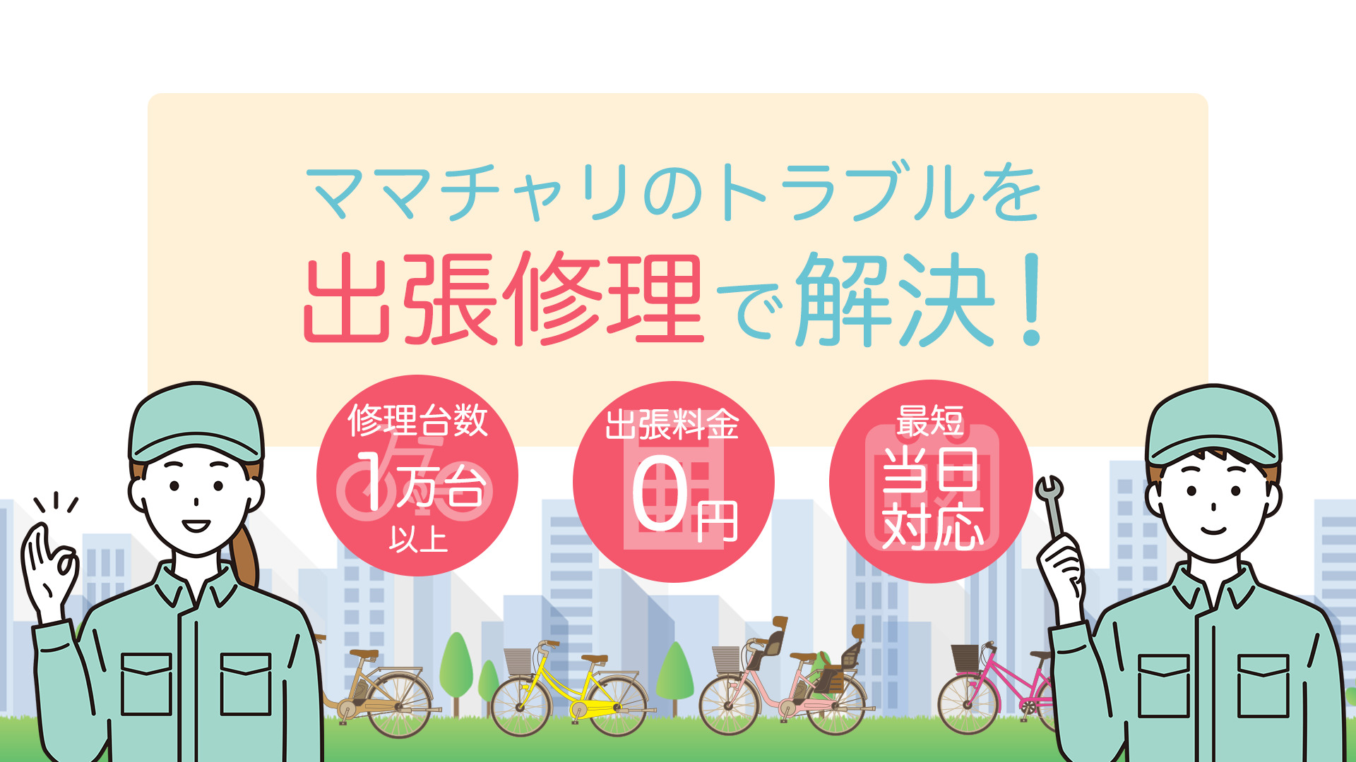 ママさん自転車サポートでは出張修理だけでなく、店舗での修理も行なっております。