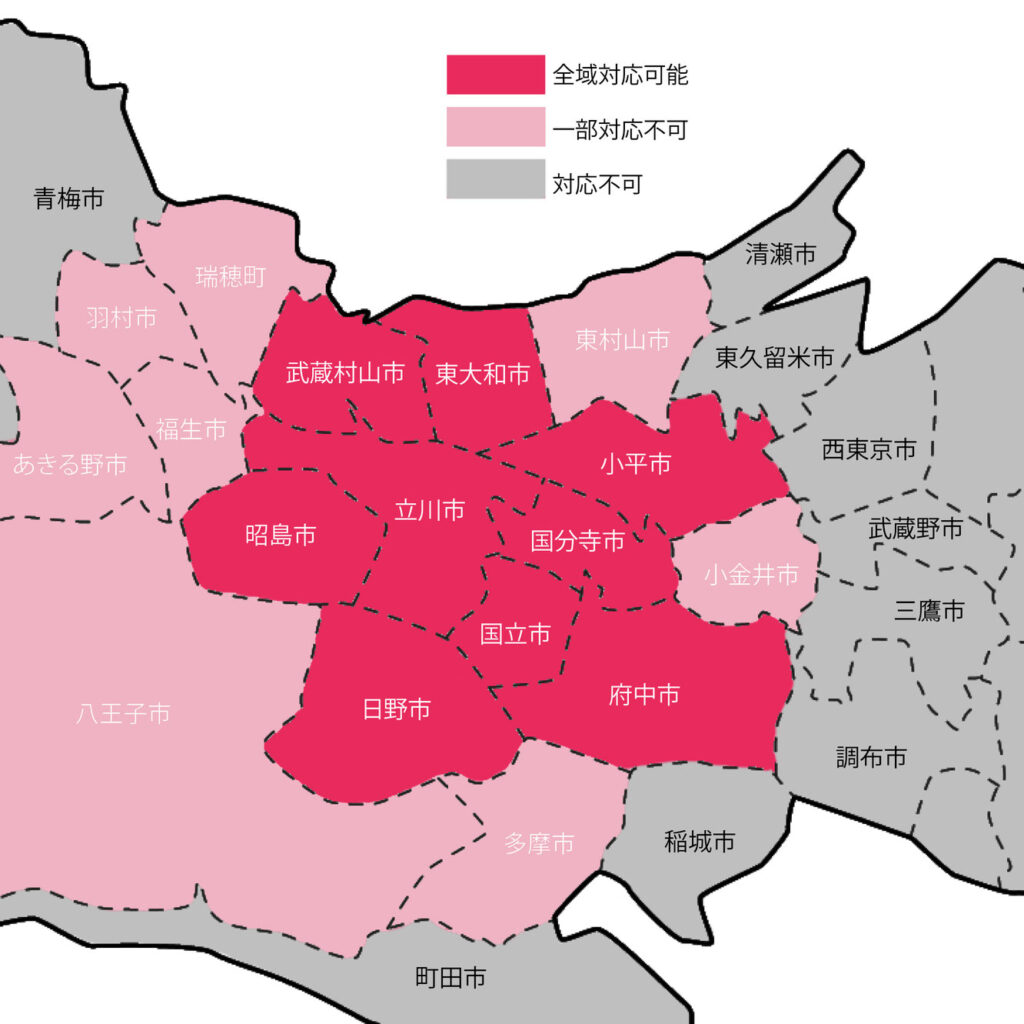 立川市・日野市・昭島市・東大和市・国立市・国分寺市・府中市・小平市・武蔵村山市
